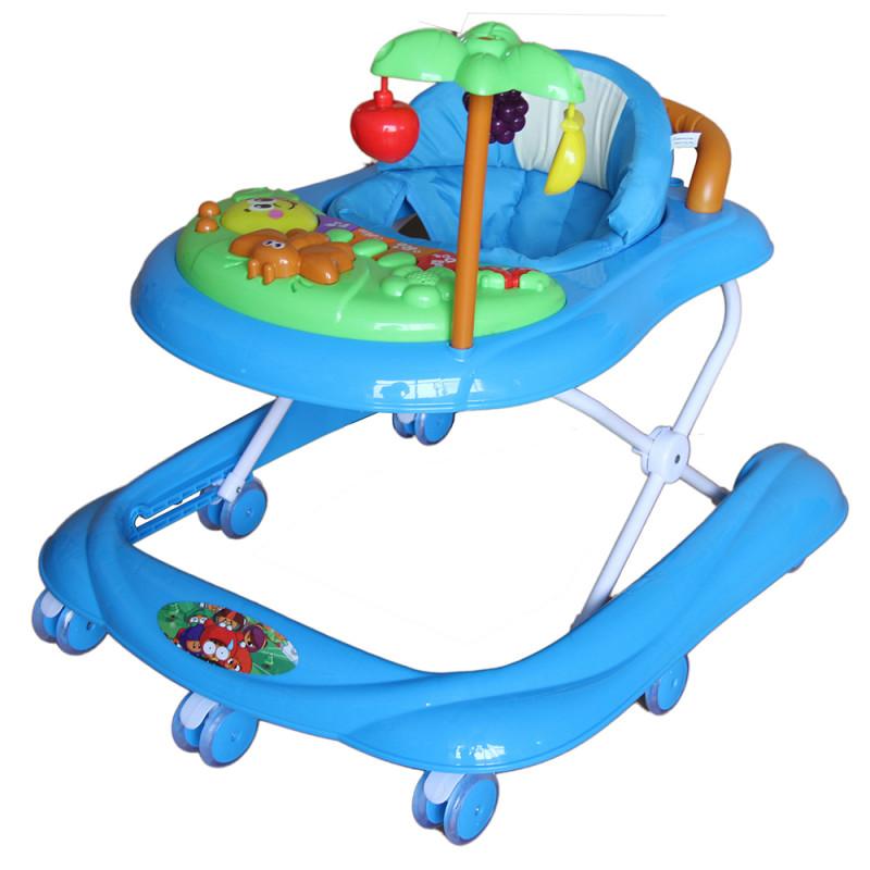 Красочные ходунки, оборудованные музыкальной панелью и игрушками. Ребенку будет удобно на сиденье, которое регулируется по высоте. Погремушки привлекут внимание малышей и позволят занять их. Ходунки можно складывать и они занимают мало места в квартире.